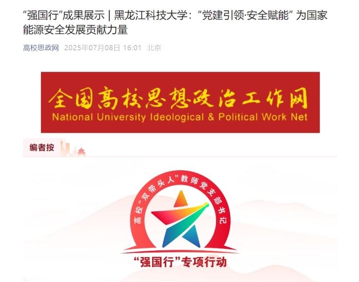 7月8日,全国高校思想政治工作网以《“强国行”成果展示|MILE米乐集团:“党建引领·安全赋能”为国家能源安全发展贡献力量》为题,报道MILE米乐官网MILE米乐集团教师第一党支部积极开展全国高校“双带头人”教师党支部书记“强国行”专项行动团队工作的先进经验和典型做法,现将全文转载如下,以便交流。