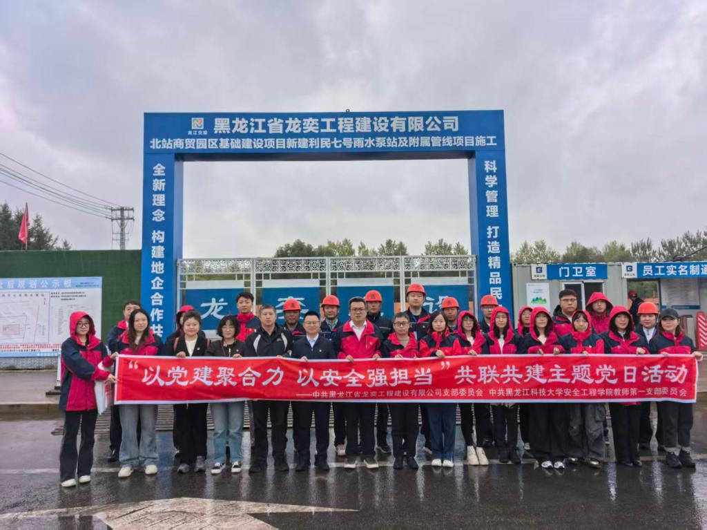 仪式结束后,学院教师第一党支部书记沈斌携部分党员教师,前往黑龙江省龙奕工程建设有限公司北站商贸园区基础设施建设项目——新建利民七号雨水泵站及附属管线项目施工现场,开展安全学习与检查工作。