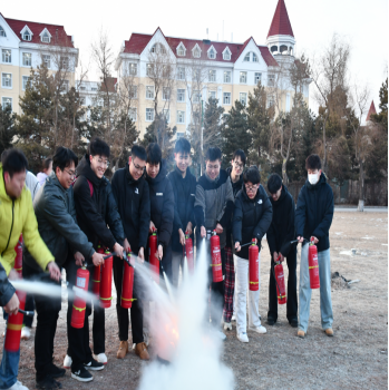活动前期,学院组织全体学生收看了“2025年春季全国高校消防安全公开课”。应急疏散演练在学生第一公寓进行,随着演习警报响起,消防烟雾弹引燃,宿舍楼内的学生快速反应,第一时间启动了消防应急预案,采取用湿毛巾捂鼻、低势行进等方法,从消防安全通道迅速、有序地撤离到安全地点。学生代表宣读了《消防安全倡议书》,保卫处工作人员对全体学生进行了灭火器基本知识及使用方法培训,在专业人员的指导下,学生们积极踊跃参与了灭火器的实操演练,进一步巩固了消防安全知识,提高了实战技能。