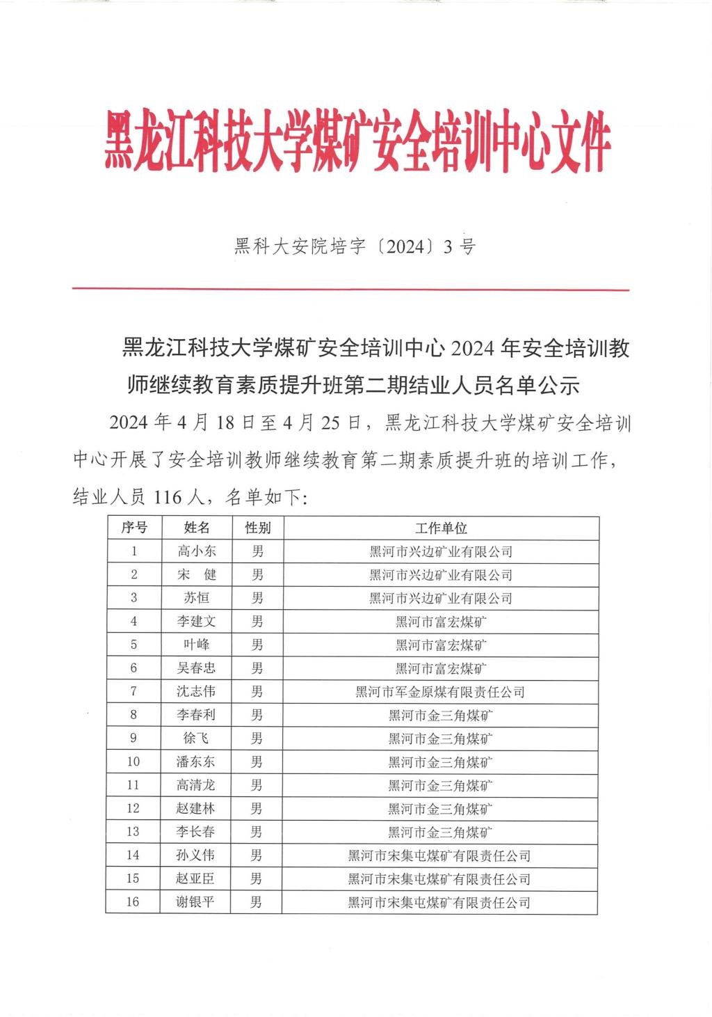 2024年鸡西安全培训教师继续教育素质提升班第四(1)期结业人员名单公示