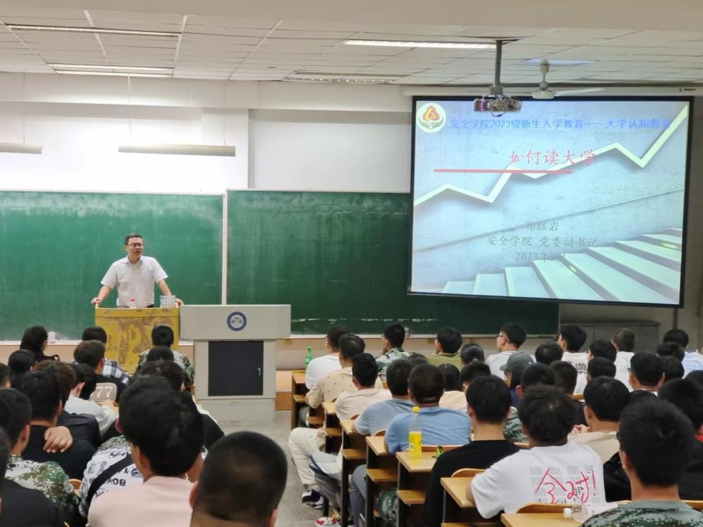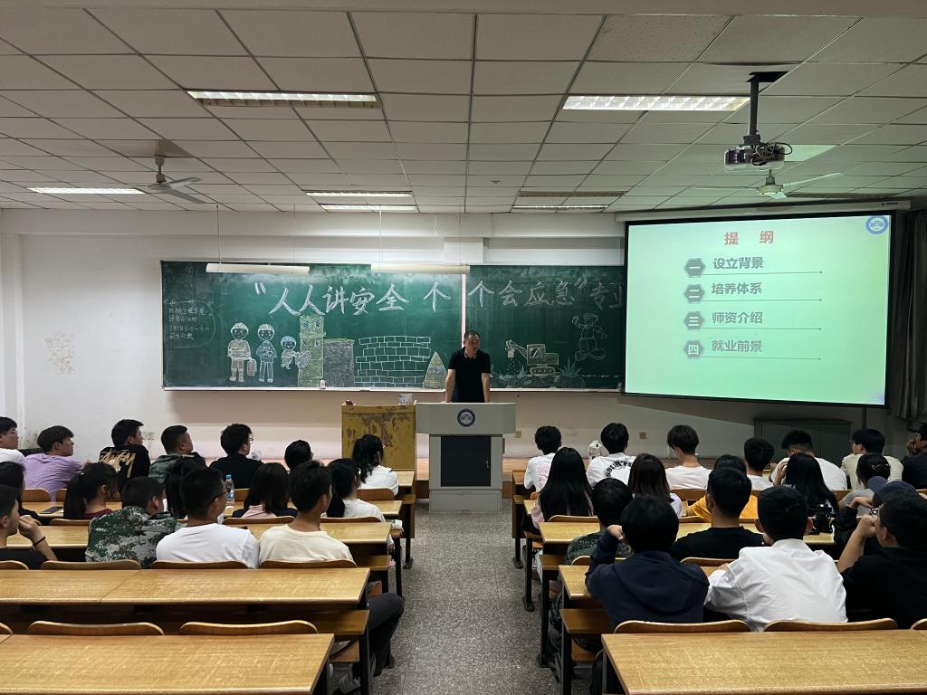 学院安全工程专业教研室主任王亚军、应急技术与管理专业教研室主任刘传海,结合专业特点,面向全体新生,分专业详细讲解专业内涵,使学生了解所学专业,了解学习课程内容,了解从事工作方向,从而更快适应大学专业课程学习,增强对专业的认同感和自豪感。