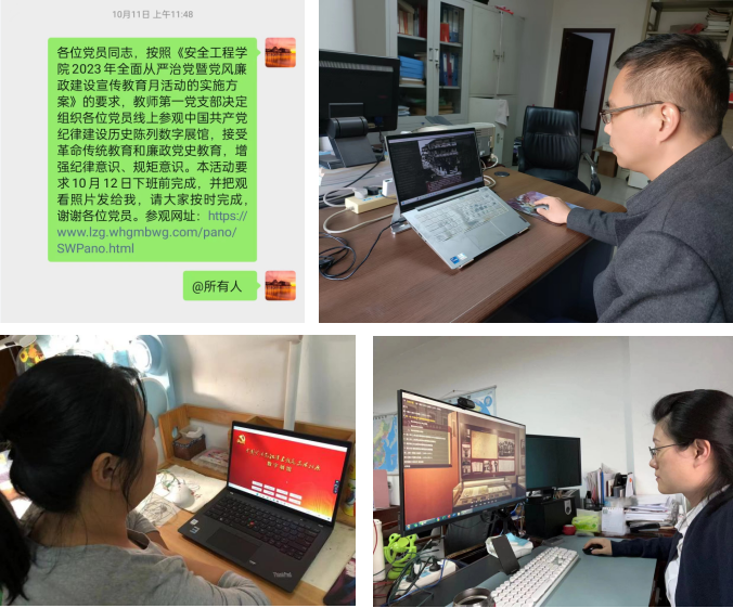 警示教育敲警钟,廉洁之花常盛开。学院领导针对中层干部开展了廉政谈话,不断增强党员干部遵守纪律的自觉性和主动性;通过观看《零容忍》《永远吹冲锋号》等专题片,警示教育学院党员干部知敬畏、存戒惧、守底线,年轻干部撰写了警示教育心得体会;学院党员、教职工线上参观了中国共产党纪律建设历史陈列数字展馆,学习了党的纪律建设和反腐败斗争的历史,接受了革命传统教育和廉政党史教育,增强纪律意识、规矩意识,提高了思想政治素质和党性修养。