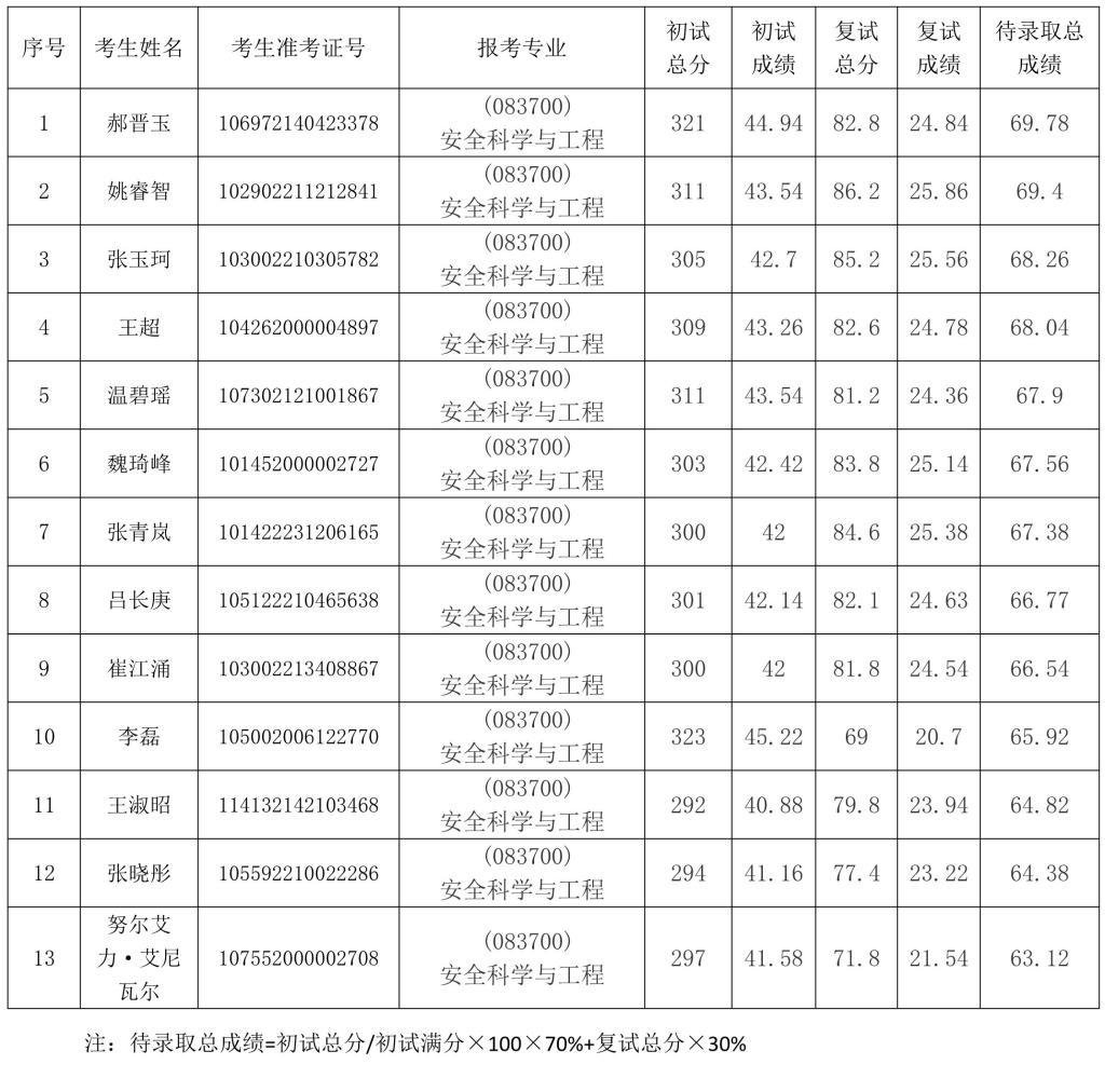 MILE米乐官网2022年安全科学与工程专业硕士研究生第二批调剂复试工作已结束,现将考生复试成绩公示如下。