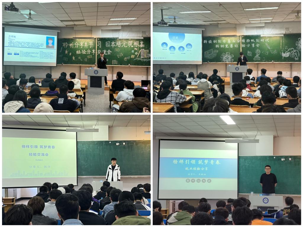 以朋辈榜样为“着力点”,做好分类指导,激发学风建设活力。开学以来,学院针对不同年级进行分类指导,有针对地开展了系列分享交流活动。针对大一学生开展了“聆听分享共学习,固本培元筑根基”经验交流会,邀请了国家奖学金获得者、省三好学生、科大之星对其分享经验,旨在挖掘朋辈榜样的典型示范作用,引导学生提升学习动力;针对大二学生开展了“科技创新夯基石,奋楫扬帆新时代”科创竞赛经验分享会,在学习专业知识的同时,鼓励其积极参加科创竞赛,以达到学以致用的目的;针对大三学生开展了“榜样引领,筑梦青春”就业、考研经验分享交流会,对大三学生进行职业生涯规划指导,助力更充分更高质量就业。通过朋辈引领,榜样作用,形成了“你追我赶”的良好氛围,以“赶帮超”的方式实现了朋辈启航,接力成长。