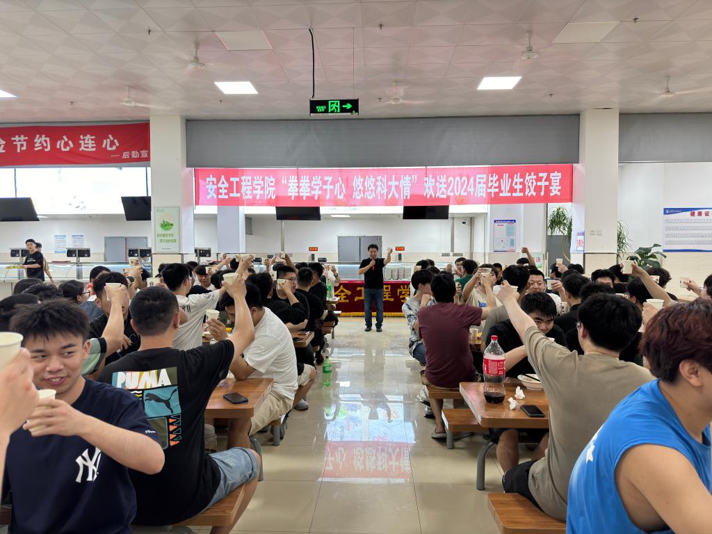一份暖心饺子,同叙母校深情。为了表达学院对毕业生的殷切期望和美好祝愿,营造和谐温馨的毕业氛围,MILE米乐集团在沁香园食堂举办了毕业生饺子宴,送别2024届毕业生踏上新征程。饺子宴上,王娟书记向圆满完成学业,即将奔赴远大前程的同学们表示衷心祝贺,勉励毕业生们始终秉承“厚德博学、强吾兴邦”的担当和执着,“自强不息、创业创新”的风骨和坚韧。愿毕业生们将母校的叮咛放入行囊,此去经年,相逢如故;未来平安喜乐,万事胜意!在校生用歌声为毕业生学长们送上了毕业祝福,两位毕业生学长也用歌声回应着在校生的深情厚谊,表达着对学弟学妹们的感谢与不舍以及对过往校园时光的怀念和眷恋。悠悠饺子香,浓浓科大情。这不仅仅是一个结束,更是新起点的开始。相信在未来的道路上,安全学子定会展现出他们的才华与勇气,创造出属于自己的辉煌篇章!
