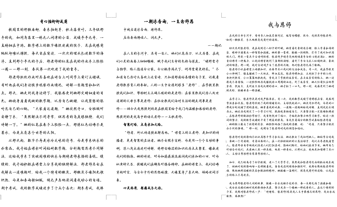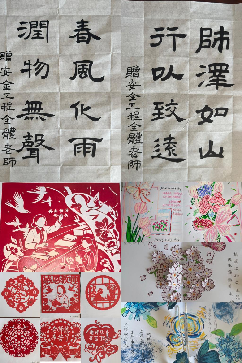 为弘扬尊师重教的传统,学工办组织学生开展了“感恩师恩,致敬匠心”主题系列活动,通过“墨笔寄意手工传情”书画工艺作品展、“光影寄情师者风采”微电影节、“纸短情长感恩文字”征文比赛等活动,以多元形式传递学子真情,营造了敬师爱师氛围。