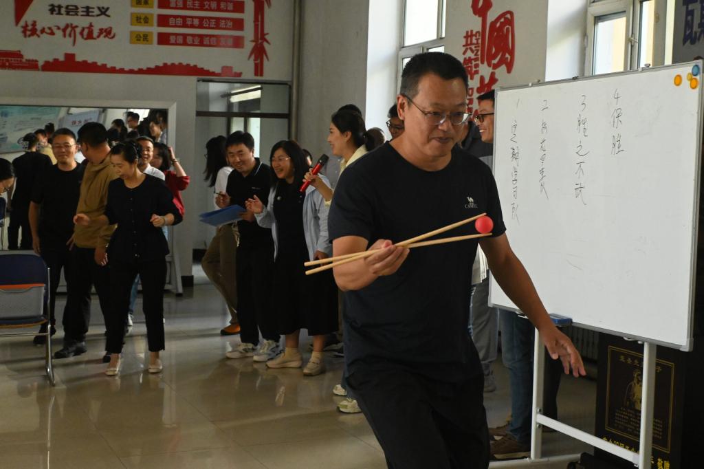 学院工会精心策划了主题趣味活动。全体教职工通过抽签随机组建四支队伍,一场充满活力的团队挑战赛随即开启。“五子棋 PK”时大家专注思索,“投壶”环节精确瞄准,“筷子夹乒乓球”小心拿捏,“你划我猜”中默契配合,“听歌识曲”里凝神辨识,各环节趣味十足。活动现场始终洋溢着热烈欢快的氛围,教职工们在轻松互动中,展现出工作之外的鲜活风采。