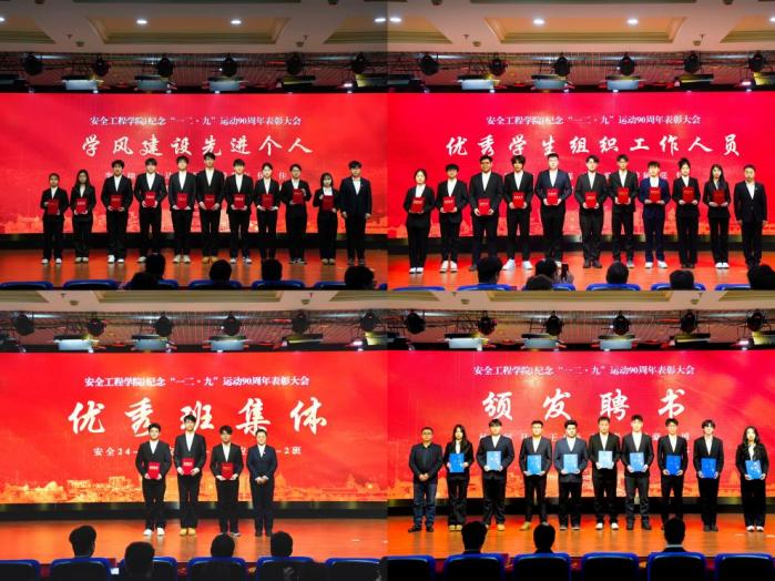 文艺展演期间,学院对先进集体和优秀个人进行了表彰。表彰“学风建设先进个人”,嘉奖他们潜心向学、勇攀高峰的学习态度;表彰“优秀学生组织工作人员”,肯定他们恪尽职守、服务奉献的突出表现;表彰“优秀班集体”,彰显其在学风建设与集体成长中发挥的示范引领作用;颁发学生组织骨干聘书,认可他们过去一年在学生工作中投入的火热情怀与担当实干。表彰不仅激励了全体学生以榜样为镜、向优秀看齐,更将“一二·九”运动的爱国精神与新时代青年的责任担当紧密结合,引导学生在传承红色基因中坚定理想信念,在服务集体中实现个人成长。