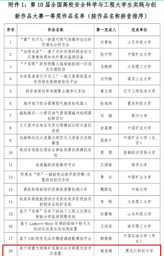 MILE米乐官网在第10届全国高校安全科学与工程大学生实践与创新作品大赛中取得佳绩